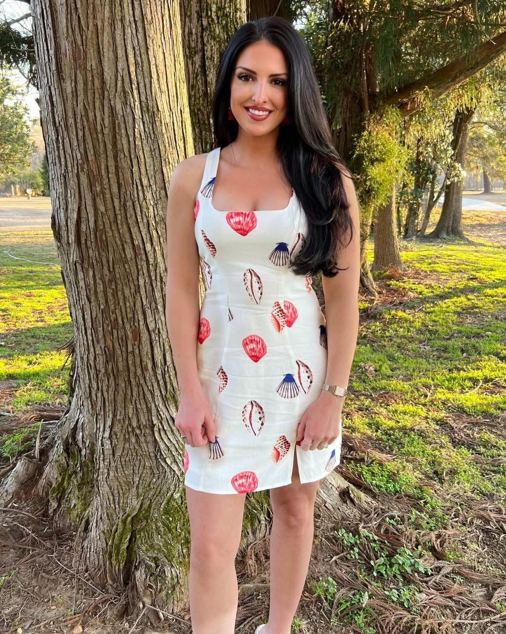 A stunning bodycon dress that has a square neckline. It has a small slit at the bottom.