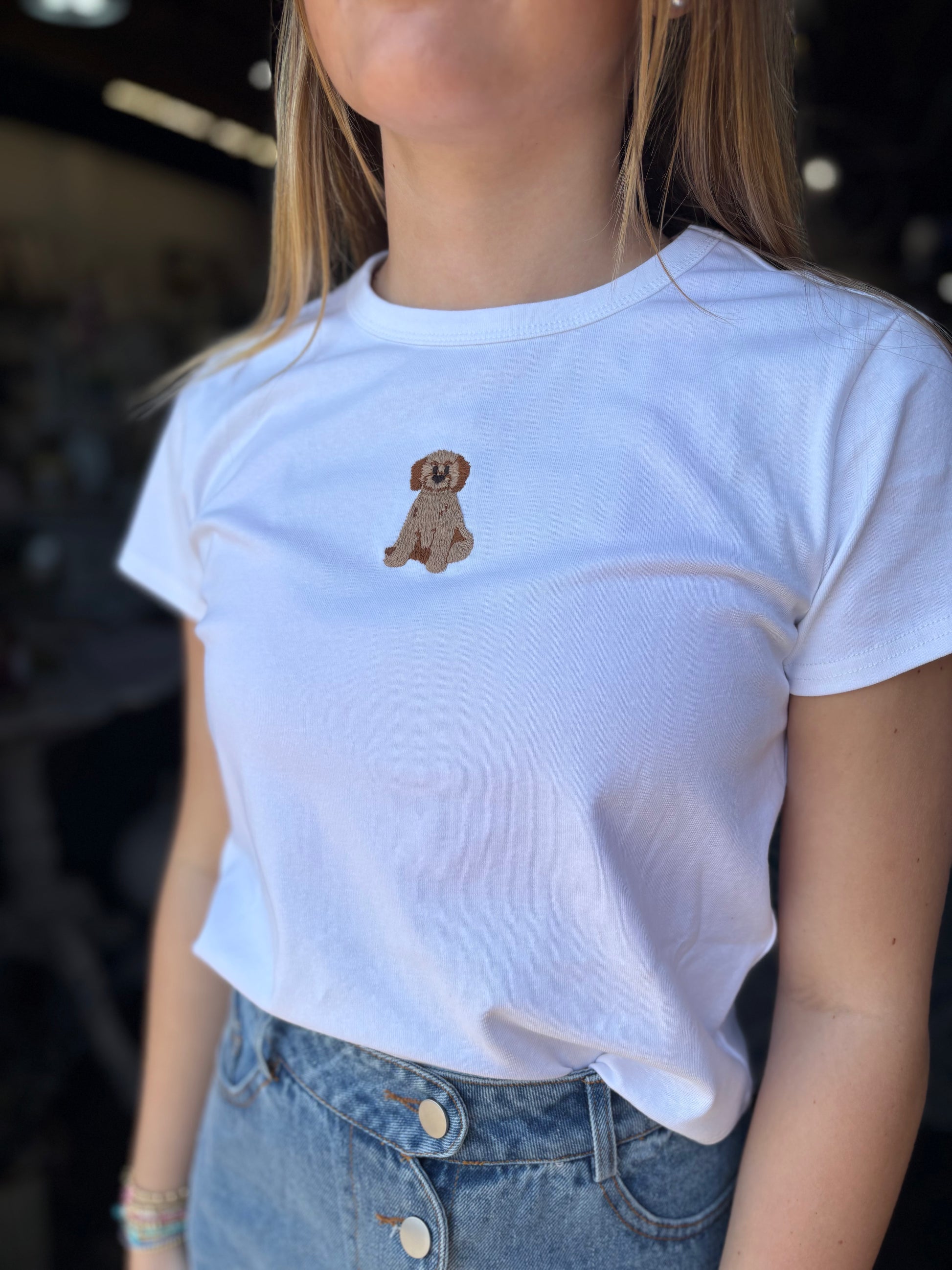 How adorable is this Golden Doodle Tee! It’s a summer must have! Model is wearing a small!