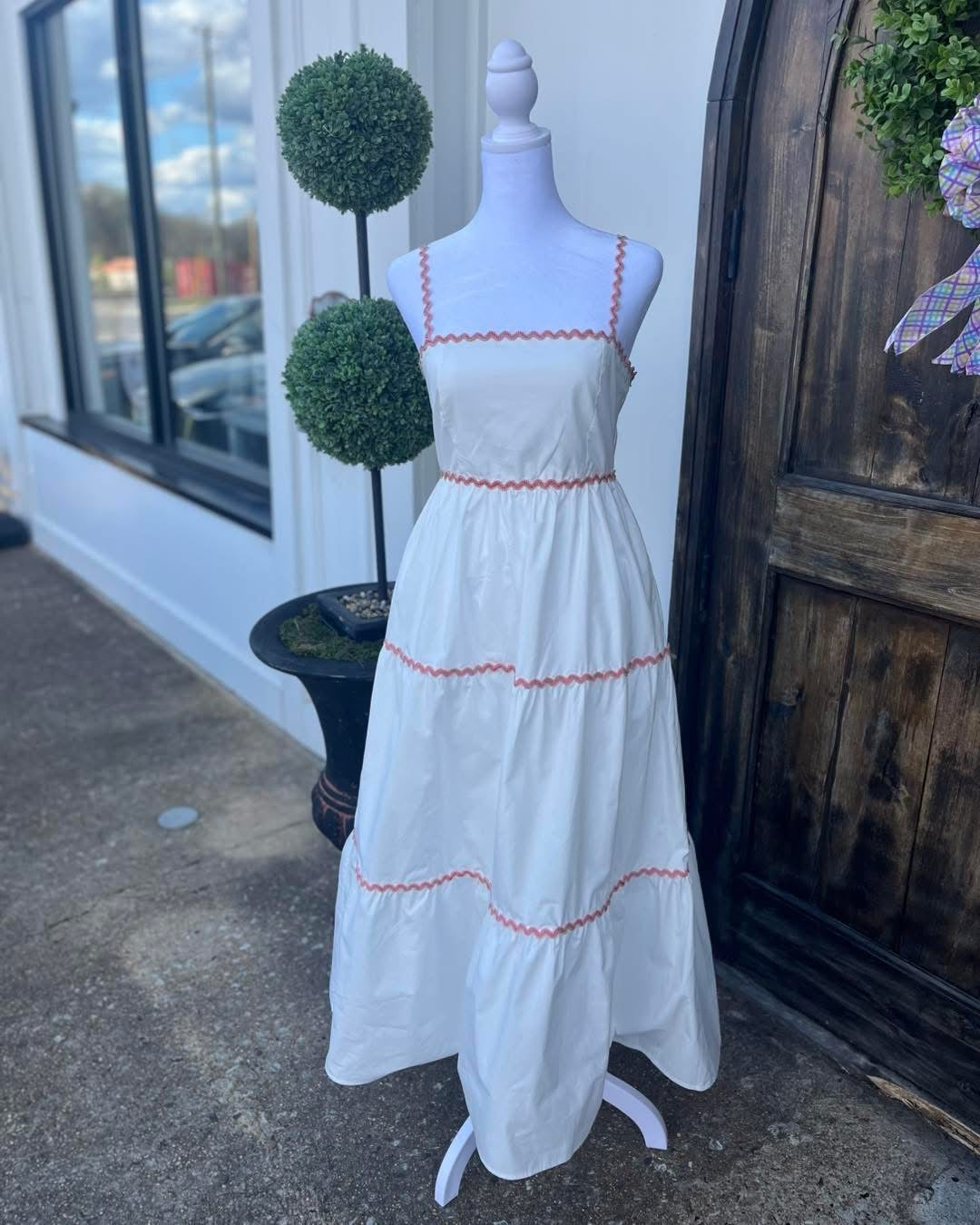 The Shmic Maxi Dress has a multicolored ricrac trim detail.